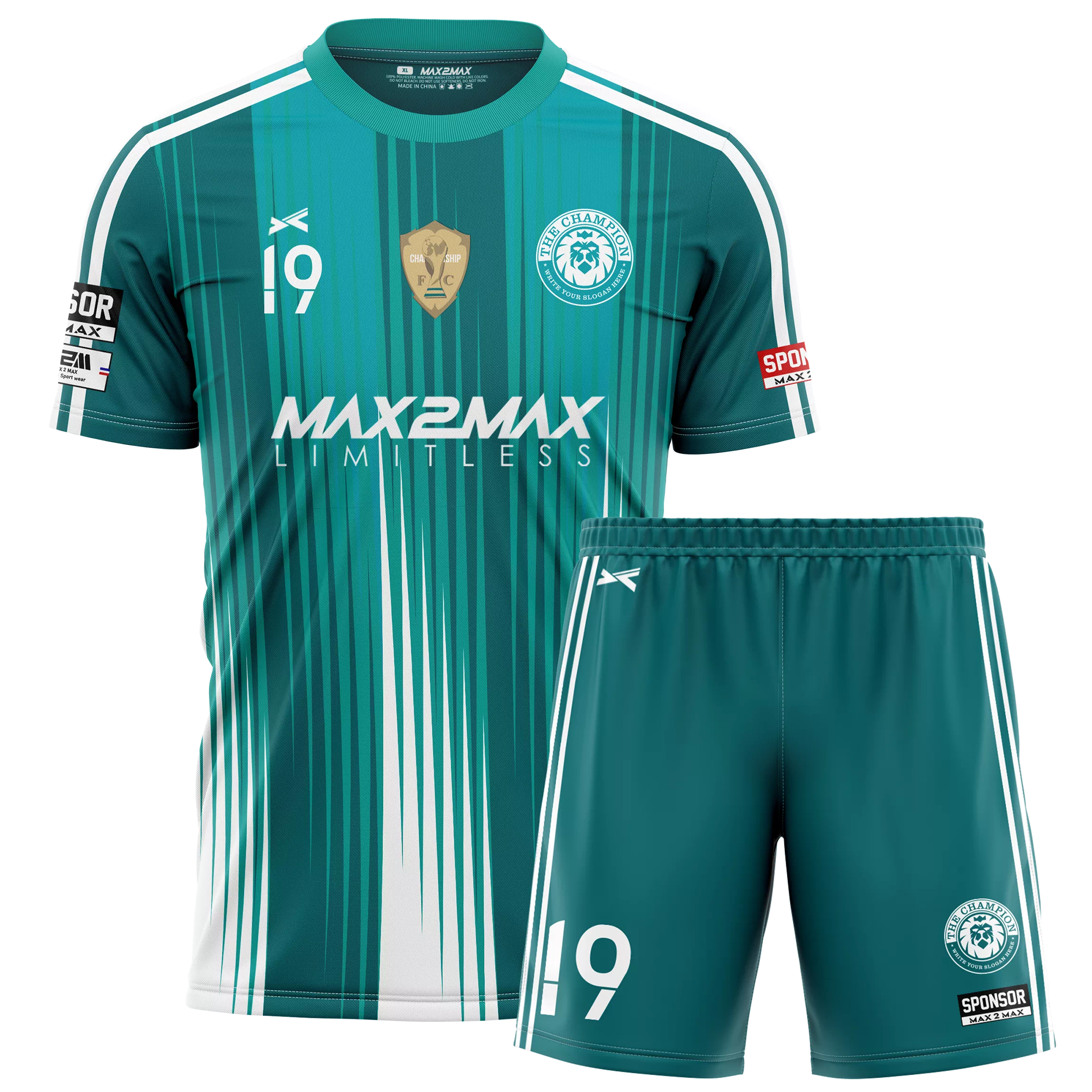 ユニフォームやパンツには、無料でチームロゴ、エンブレム背番号/胸番号、個人名(ネーム)、スポンサー名/ロゴを入れてご制作できます。