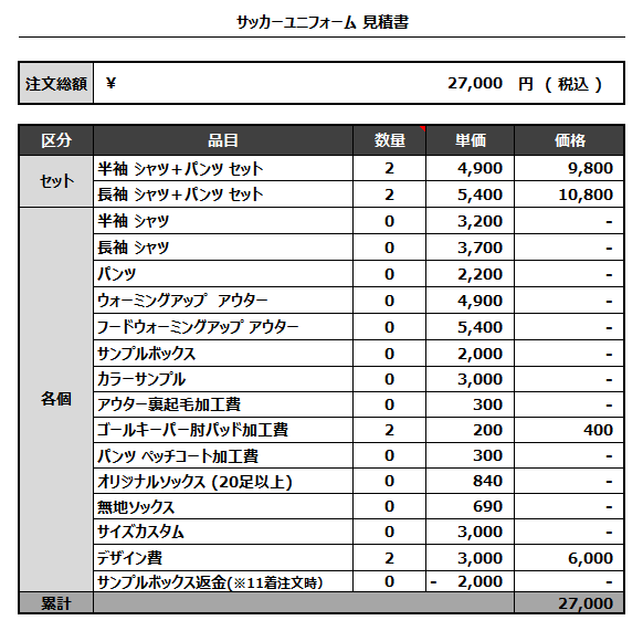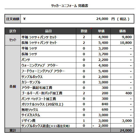 注文するユニフォームの最終デザインと見積もりの数量を確認ください。