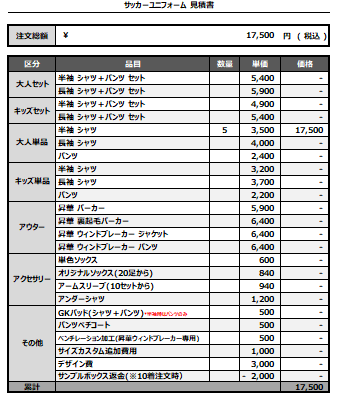 注文するユニフォームの最終デザインと見積もりの数量を確認ください。