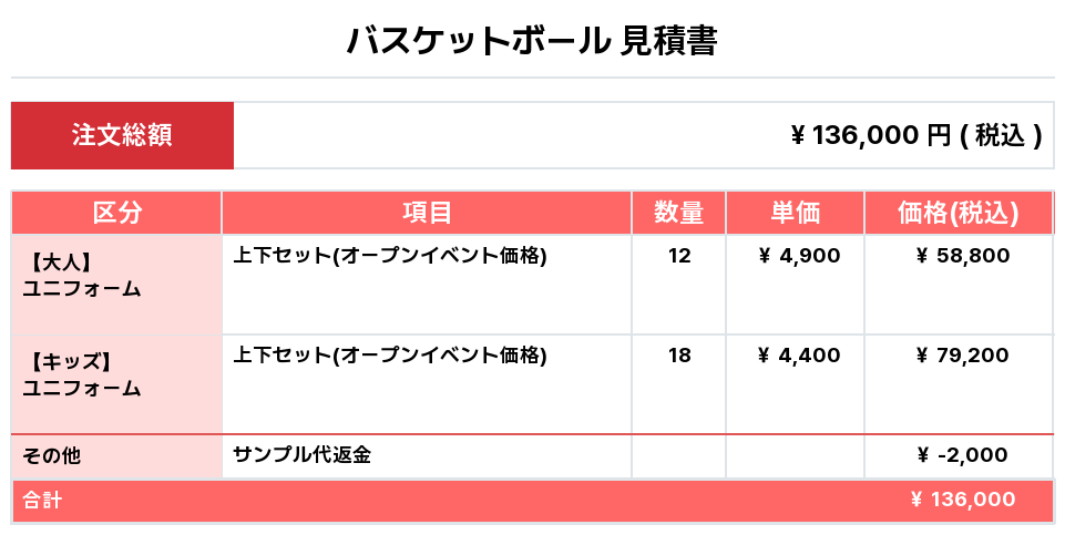 注文するユニフォームの最終デザイン、価格、数量をご確認ください。
