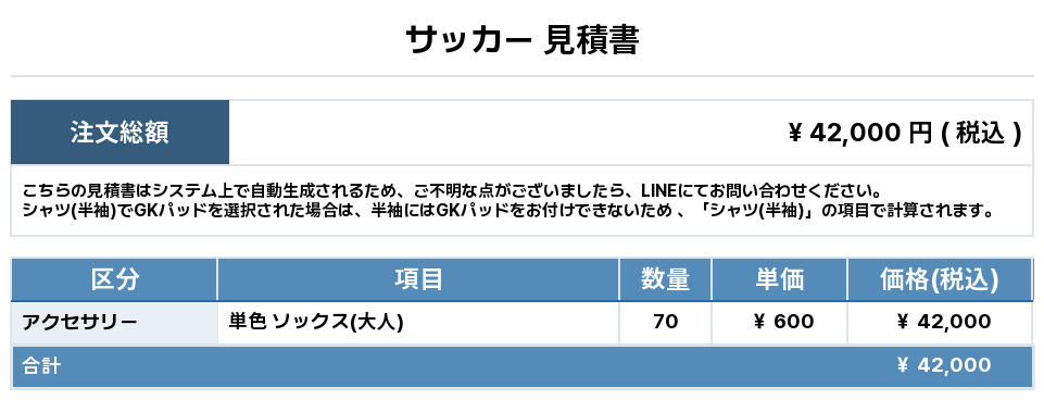 注文するユニフォームの最終デザインと見積もりの数量を確認ください。