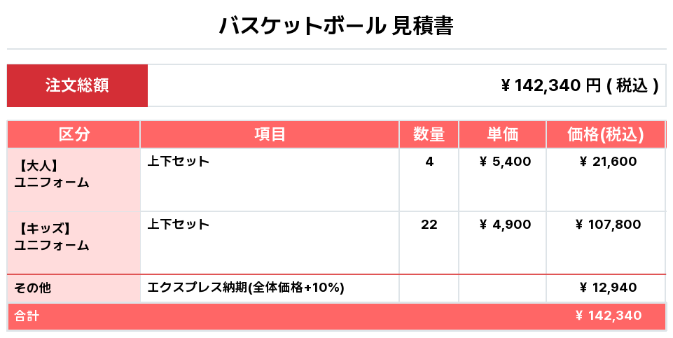 注文するユニフォームの最終デザイン、価格、数量をご確認ください。