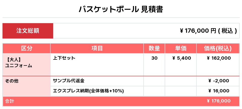 注文するユニフォームの最終デザイン、価格、数量をご確認ください。