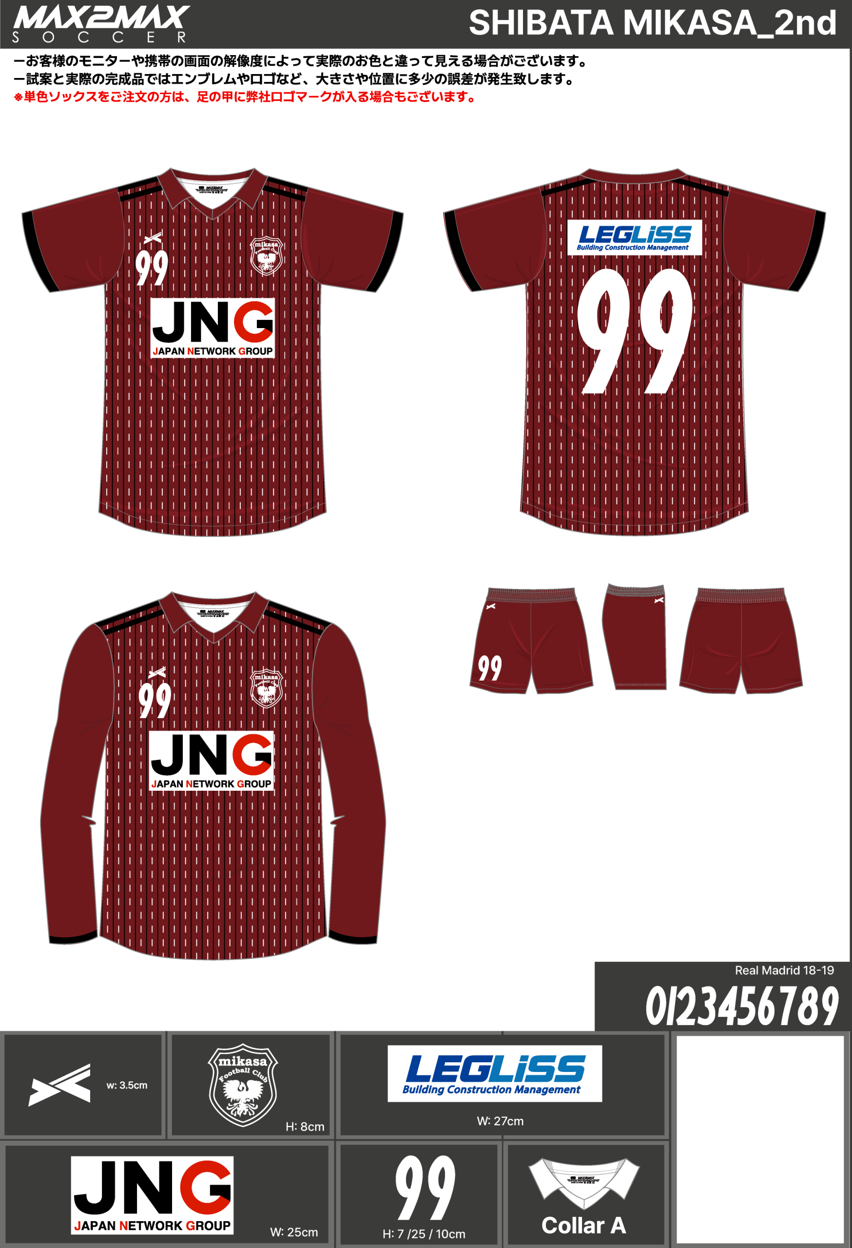 注文するユニフォームの最終デザインと見積もりの数量を確認ください。