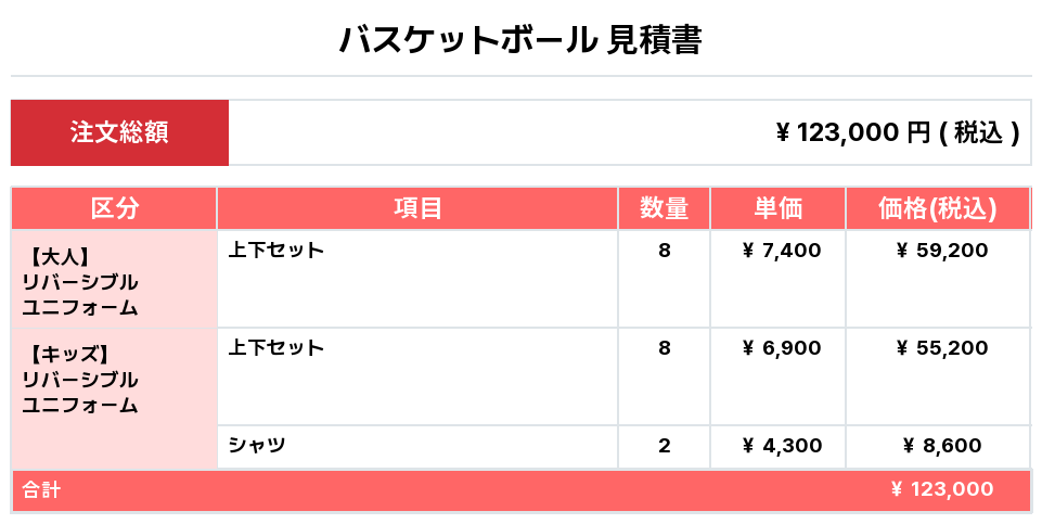 注文するユニフォームの最終デザイン、価格、数量をご確認ください。
