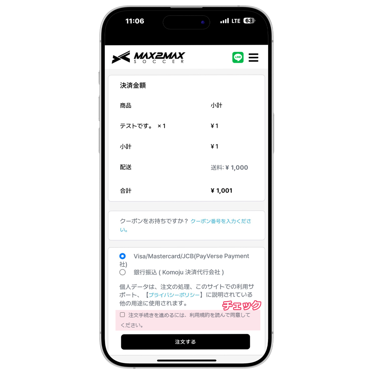 3. お買い物カゴに追加後、支払い金額を確認し進む